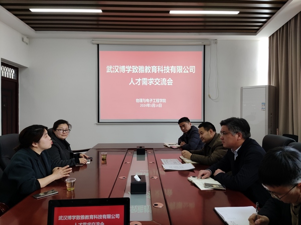 3月14日,武汉博学致雅教育科技有限公司总经理吴紫艳一行2人来院交流座谈,共同商讨毕业生招聘以及校企合作事宜。院分党委书记唐传球主持会议,BB贝博艾弗森领导班子、院办公室主任曾虎参加活动。