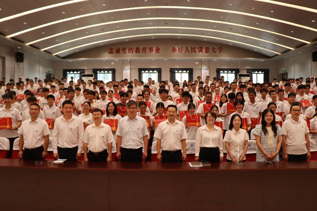 老生代表程孟昱结合自身经历,同大家分享对老员工活的见解,帮助新生树立学习目标。随后,全体新生们观看了已毕业的学长学姐精心录制的祝福视频,感受学长学姐们真切祝福。新生代表夏欣欣分享了对汉师文化底蕴的感受以及对所学专业的理解,号召同学们以智慧与勇气为笔创造人生,以饱满热情和坚定信念投身学习。