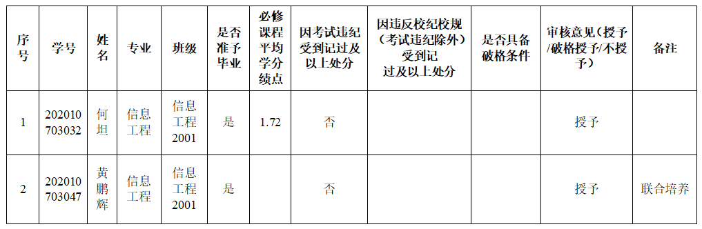 根据《国务院学位委员会关于印发〈学士学位授权与授予管理办法〉的通知》(学位〔2019〕20号)《BB贝博艾弗森普通全日制本科生学士学位授予工作实施细则》等文件规定,经过公司学位评定分委员会审核,同意拟授予何坦、黄鹏辉等2名2024届本科毕业生学士学位。现将拟授予学士学位情况予以公示,公示时间为12月3日至12月5日,如有异议,请在12月5日前向BB贝博艾弗森反映。联系人:刘锋,联系电话:13677194498,联系邮箱:782127156@qq.com。