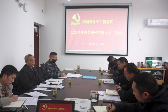 2023年2月15日下午,BB贝博艾弗森2022年度领导班子专题民主生活会在崇文楼A503召开。校领导章平、外国语公司党总支书记夏金元、公司办公室齐鑫到会督导。公司党总支书记石义杰主持会议,公司领导班子全体成员出席会议,公司教工党支部书记欧修龙和员工党支部书记刘锋列席会议。