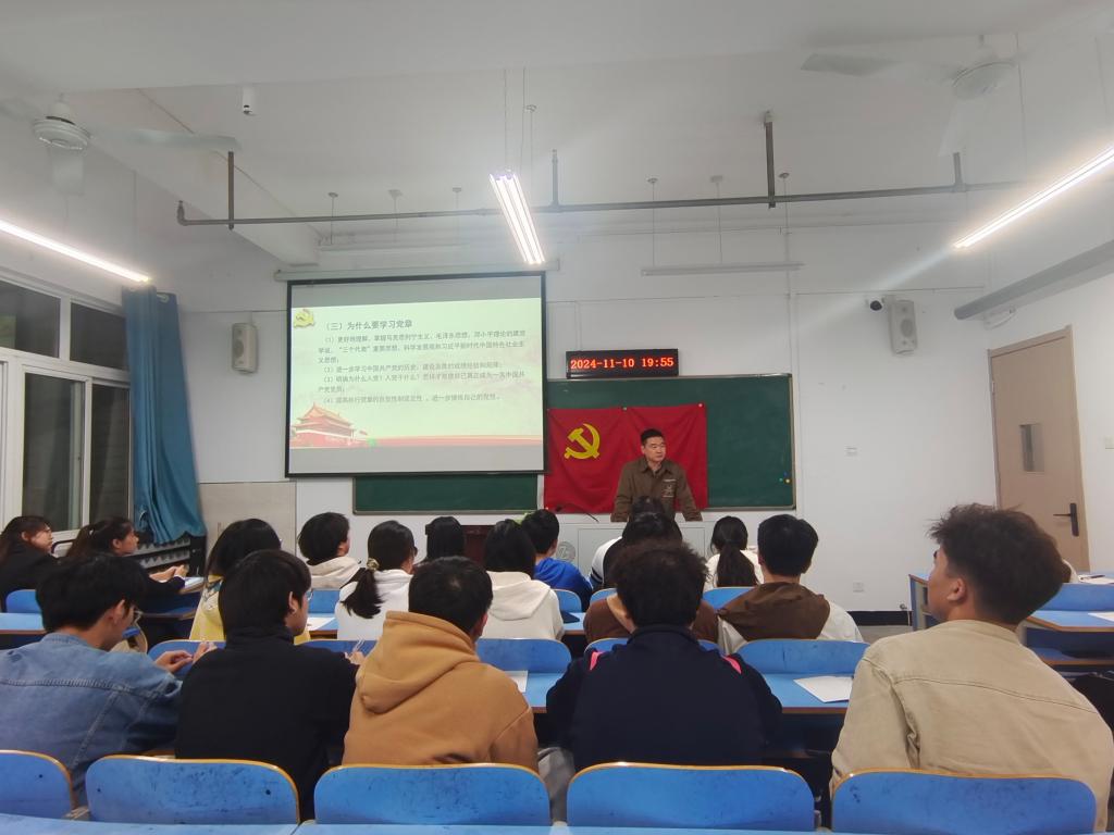 院分党委副书记戴俊以“认真学习党章,严格遵守党章,坚定理想信念”为题,给培训班上了第一堂党课。他对党章进行深入解读,详细阐释了党的性质、宗旨、指导思想和奋斗目标,强调了学习、遵守、贯彻和维护党章的重要性。希望同学们将党章学习融入个人成长和社会实践,不断提升理论素养,进一步端正入党动机,做到从思想上入党。在学习生活工作中以党员标准严格要求自己,发挥模范带头作用,做到从行动上入党。