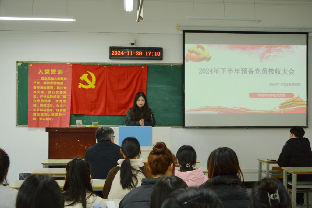 大会严格遵循预备党员接收程序进行,周秋悦等10名发展对象依次汇报个人的思想、学习、工作情况以及对党的认识,表达了自己加入中国共产党的决心和强烈愿望。培养联系人对发展对象进行了客观评价,肯定了他们的优点和成绩,也指出了存在的不足。支部纪检委员范志鹏代表支委会报告了10名发展对象的政治审查情况,参会的其他党员同志也积极发言。最后,经与会党员无记名投票,支部大会一致同意接收周秋悦等10名同志为中共预备党员。
