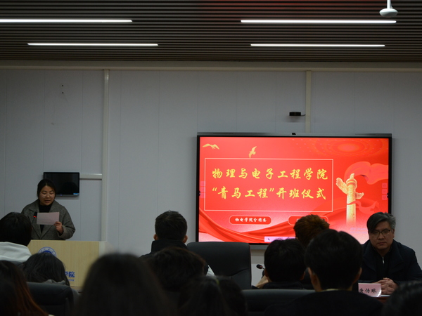 12月6日晚,2023年“青马工程”培训班开班式在崇文楼B809隆重举行。院分党委书记唐传球、分团委负责人李朦、辅导员范志鹏和本期培训班学员参加。开班式由李朦主持。