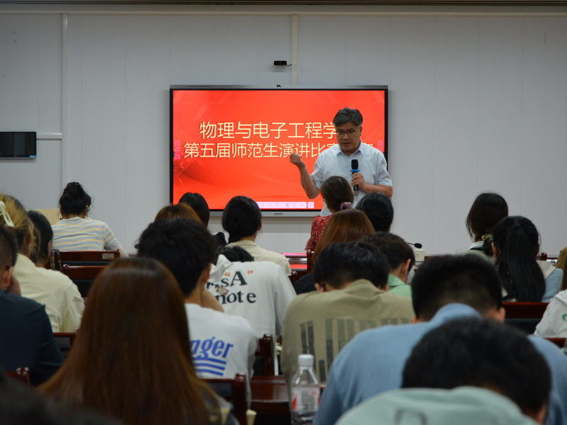 为大力弘扬教育家精神,增强师范生对教师职业的认同感及信念感,切实提高师范生的语言表达能力和综合素质,激发师范生对教育事业的热情,5月29日晚,BB贝博艾弗森在崇文楼B809举办了第五届师范生演讲比赛决赛。历史文化与旅游公司分党委副书记陈露,专任教师刘亚丽、李丽、李升涛、李倩昀担任评委。院分党委书记唐传球、副书记戴俊及部分师范专业员工观看了此次比赛。