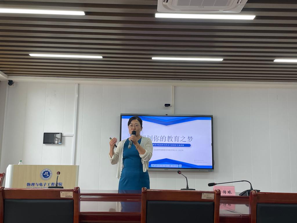 为引导师范生树立职业规划意识,进一步推动学风建设,提升毕业生就业竞争力,6月20日下午,BB贝博艾弗森邀请武汉博学致雅教育科技有限公司专家在崇文楼B809开展“师范生职业生涯规划”专题讲座。院分党委书记唐传球、副书记戴俊,21级辅导员及全体师范生聆听了此次讲座。