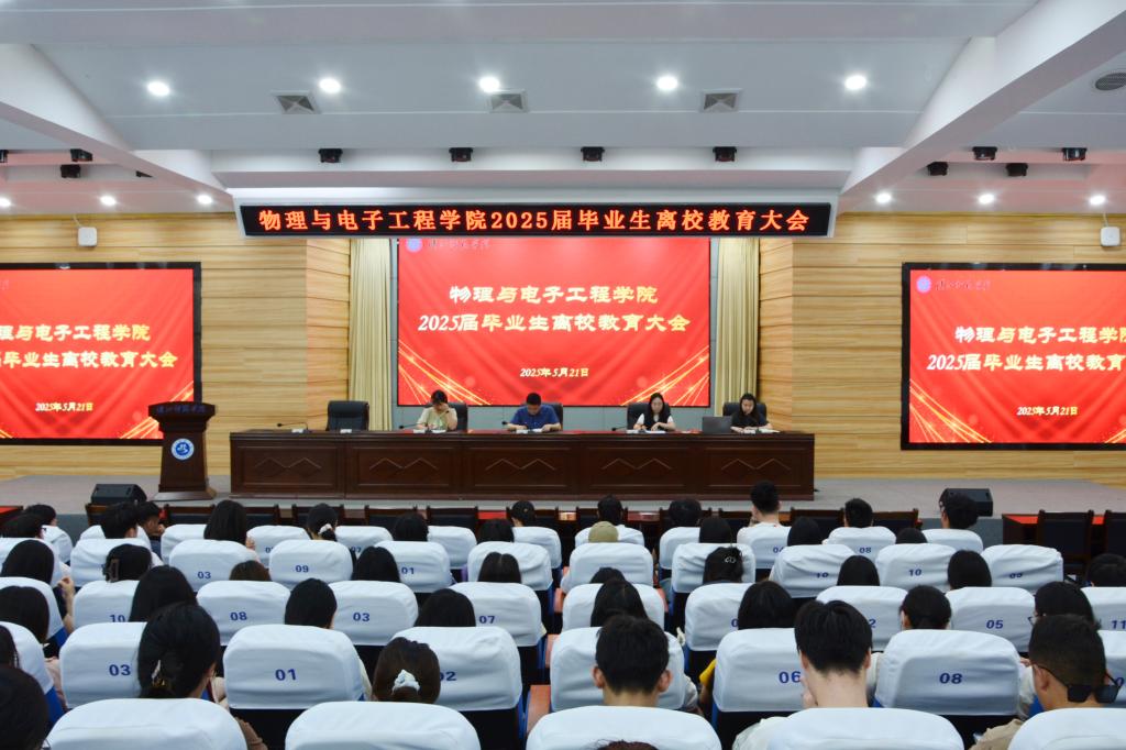 为做好毕业生教育、管理和服务工作,确保毕业生文明、安全、和谐、有序离校,5月21日上午,BB贝博艾弗森在崇文楼C101会议室召开2025届毕业生离校教育大会。院分党委副书记戴俊、学工办主任尹诗雅、辅导员田梦谣和2025届全体毕业生参加会议,会议由辅导员贺培主持。